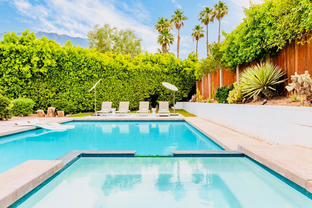 ID#1837 | The Dream Home DAMHIN ANG MAHIKA! MGA INDIBIDWAL o MAG - ASAWA na naghahanap ng LUHO, mga ALAALA, at PAG - IIBIGAN: Pumunta sa Airbnb #1 ng Palm Springs AT Home - isang mid - century retreat na itinampok sa mga pambansang publikasyon. Sa likod ng mga maliwanag na dilaw na pinto, naghihintay ang iyong pribadong paraiso kasama ANG IYONG BUONG SUKAT NA PRIBADONG POOL, pinainit na spa, at mayabong na hardin. Perpekto para sa mga honeymoon, anibersaryo, o di - malilimutang bakasyunan para makapagpahinga, muling kumonekta, at lumikha ng mga pangmatagalang alaala. Huwag maghintay - i - book ang iyong hindi malilimutang bakasyon ngayon!