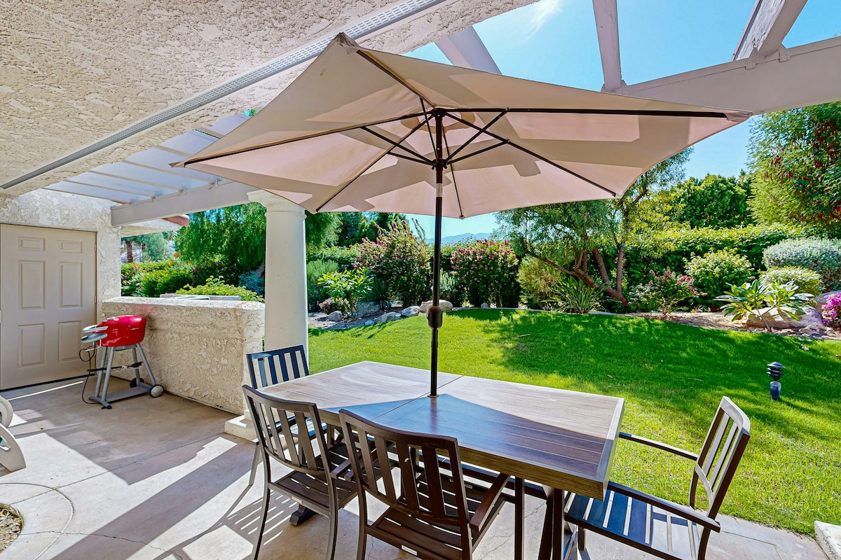 "Higit pa sa isang kama at isang kuwarto" ⭐️ "Lalo naming nagustuhan ang soaking tub at pribadong bakuran" ⭐️ "isang ganap na hiyas sa disyerto" ⭐️ 👉 bahagi ng tahimik na triplex apartment complex - walang nakakonektang pader - sariling pasukan - ganap na nakapaloob na bakuran kusina 👉 na kumpleto sa kagamitan - panloob na bathtub na may shower 👉 gas fire pit - propane grille - pergola misters - duyan - workspace ng opisina 5 mins na → kapitbahayan Vons/Stater Bros 20 minutong → Downtown Palm Springs