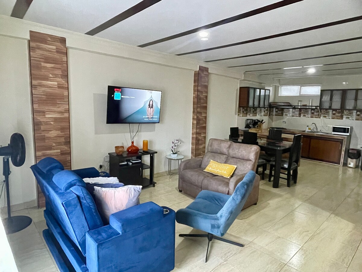 Maligayang pagdating sa Malagana House! Ang Malagana House ay hindi lamang isang bahay, ito ay isang kanlungan ng kapayapaan at kaginhawaan! Matatagpuan sa gitna ng lungsod, nag - aalok ito ng oasis ng katahimikan sa isang residensyal at ligtas na kapitbahayan. Komportable at estilo: Masiyahan sa komportableng kapaligiran na may mga komportableng sofa, malaking screen para sa iyong mga sandali ng libangan, at modernong dekorasyon na lumilikha ng perpektong lugar para makapagpahinga pagkatapos tuklasin ang lungsod.