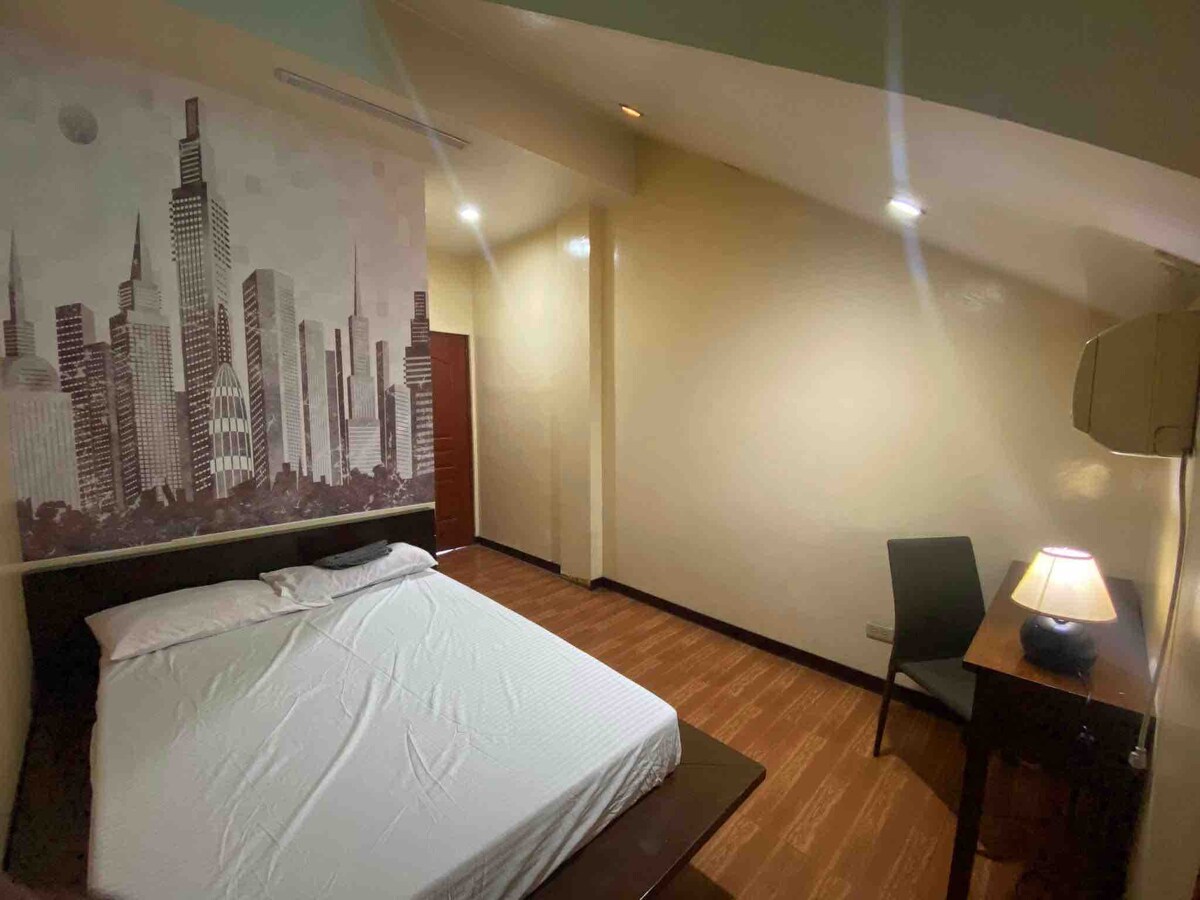Mag-enjoy sa nakakarelaks na pamamalagi sa maluwag at abot-kayang Penthouse unit #305 na nasa pinakataas na ika-3 palapag. Isa itong unit na may 2 kuwarto at 1 full bathroom sa gusaling tirahan na may mababang densidad. Condo unit na may privacy na may swimming pool sa harap, chill-lounge area, at lugar para sa BBQ. Perpekto para sa bakasyon ng mga turista, pamilya, balikbayan, propesyonal, at maliit na grupo. May sapat na espasyo para sa 4 na bisita, (puwedeng humiling ng karagdagang kutson sa murang halaga para sa hanggang 3 pang bisita).