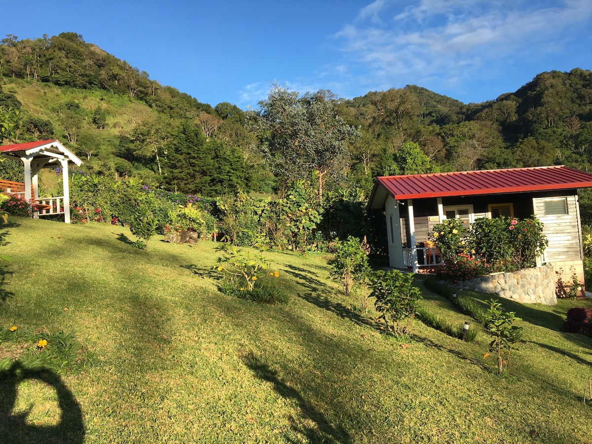 Ang Sunshine Cottage ay isang maliit na cottage sa likod na hardin ng Finca Katrina. Makikita ito sa burol na may mga tanawin ng Palo Alto at Jaramillo na may plantasyon ng kape sa harapan. May buong (dobleng) higaan, kuwarto para isabit ang iyong mga damit at para itabi ang iyong mga gamit. Mayroon kang maliit na refrigerator, toaster oven, lababo, coffee maker, at aparador para sa pagkain, ngunit walang kalan sa itaas. Kung naghahanap ka ng higit pang silid - tulugan, may mga karagdagang yunit sa Finca Katrina na pumupuri sa Sunshine Cottage. Padalhan kami ng note!