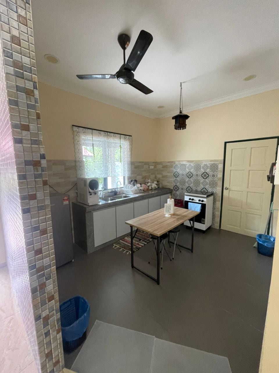 3km@ 5 minuto mula sa sentro ng lungsod Maraming sikat na kainan sa muar, oil pump at mini mart sa malapit Pangunahing lokasyon sa tabing - kalsada Maluwang na bakuran sa labas 200 metro mula sa muar bypass road Air conditioning sa lahat ng kuwarto at sala 2 silid - tulugan, 1 banyo 2 queen bed 2 sofa bed Smart TV Washing machine Refrigerator Kalang de - kuryente Electric rice cooker - Electric kettle Heater ng tubig Shower gel at shampoo Mga tuwalya Mga kumot Mga banig ng panalangin Bakal Hair dryer 3 sa 1 inumin Mga biskwit