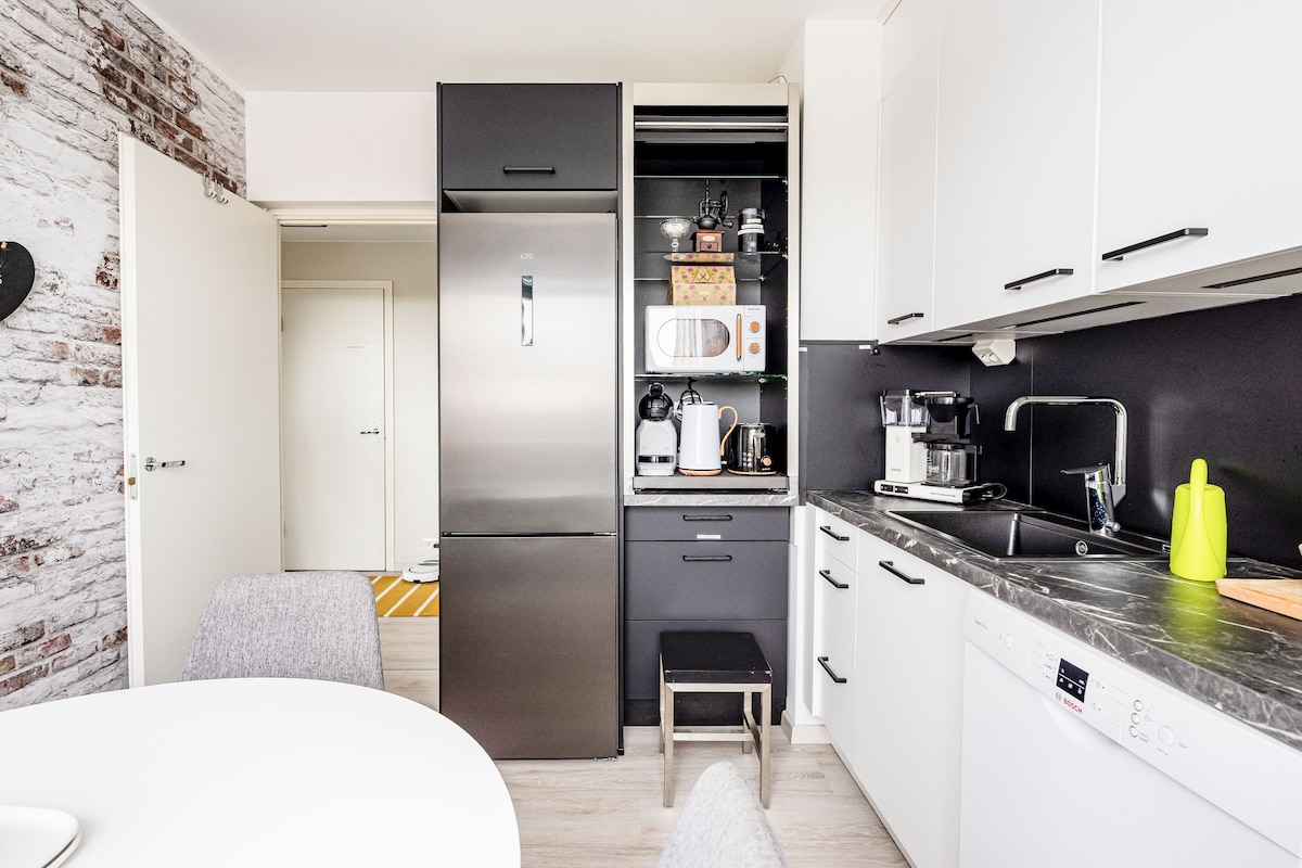 Maaliwalas na apartment sa sentro na may sariling sauna at terrace