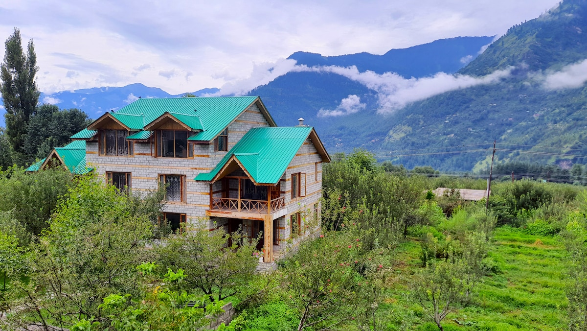 Maligayang pagdating sa aming fairytale na 'Evara' – na nangangahulugang 'regalo ng Diyos.' Matatagpuan sa tahimik na nayon ng Naggar. Ang Evara ay isang magandang yari sa kahoy na duplex cottage na nag - aalok ng kapayapaan, kaginhawaan, at mga nakamamanghang tanawin ng bundok. Napapalibutan ng maaliwalas na mga halamanan ng mansanas at tahimik na kagandahan ng kalikasan. Nagtatampok ang tahimik na bakasyunang ito ng mga balkonahe sa tatlong panig, na nagpapahintulot sa iyo na magbabad sa mga nakamamanghang tanawin mula sa pagsikat ng araw hanggang sa paglubog ng araw. Mainit at komportableng interior, kumpletong kusina, at marangyang Jacuzzi para makapagpahinga pagkatapos ng isang araw ng pagtuklas.