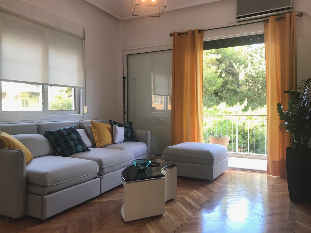 Ang Veranda ay isang marangyang, mataas na aesthetic at modernong 2 silid - tulugan na aprtm. na may napakalawak, mahaba at may lilim na veranda. Mainam na pagpipilian para sa mga mag - asawa, pamilya, solo at business traveler na naghahanap ng ganap na kaginhawaan. Matatagpuan sa isa sa mga pinakamagaganda at ligtas na lugar sa Athens, sa tabi ng Panathenaic Stadium, 4 na minutong lakad mula sa Presidential Mansion at National Garden, 8 minutong lakad mula sa Kolonaki sq, 12 minutong lakad ang layo mula sa Syntagma square at maigsing distansya mula sa Acropolis