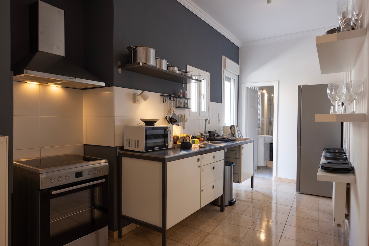 Masiyahan sa mga simpleng bagay sa mapayapa at sentral na tuluyan na ito. Isa itong maluwang na studio na 47 sq.m. 20 minutong lakad papunta sa mga tanawin at sentro ng Athens. Malapit sa lahat ng uri ng mga tindahan at restawran, na may mataas na index ng pamumuhay at kaligtasan ng mga residente ng lugar kahit na huli na sa gabi. Nasa tahimik na kalye ito pero nasa gitna ng Pagrati habang ito ay isang maaraw at maaliwalas na lugar na may 6 na hakbang mula sa pasukan, na may mga gitnang bintana sa harapan. Dagdag na singil na 15euro para sa ika -2 hanay ng linen para sa couch