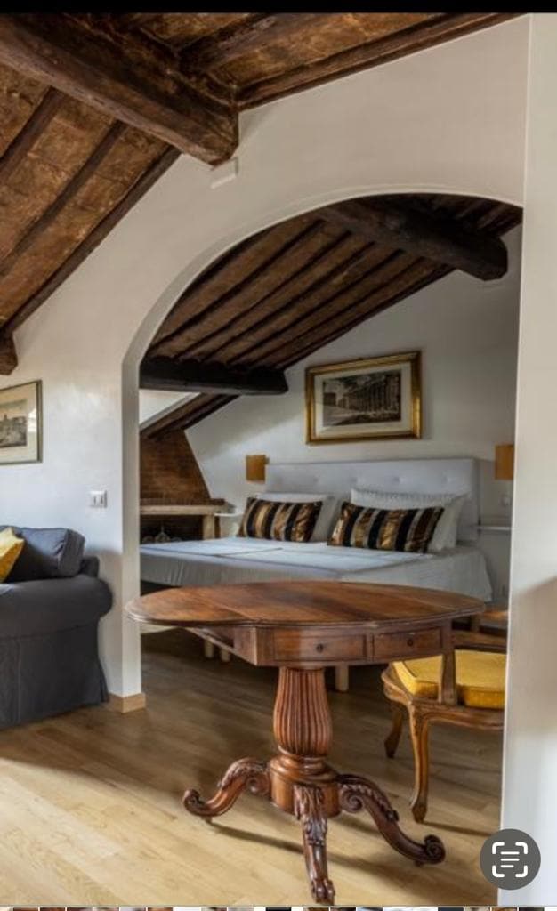 Elegante appartamento di 50 mq su due livelli situato in una location esclusiva, nella piazza del Pantheon, al 5° ed ultimo piano con ascensore di un signorile palazzo del '500. Luminoso e con una vista mozzafiato sulla cupola del Pantheon e sui tetti di Roma. Prima di prenotare si prega di leggere attentamente tutte le Regole della Casa aggiuntive scritte (spese di pulizia, late check-in) Please read carefully all the additional House Rules before booking (about cleaning fee, late check-in)