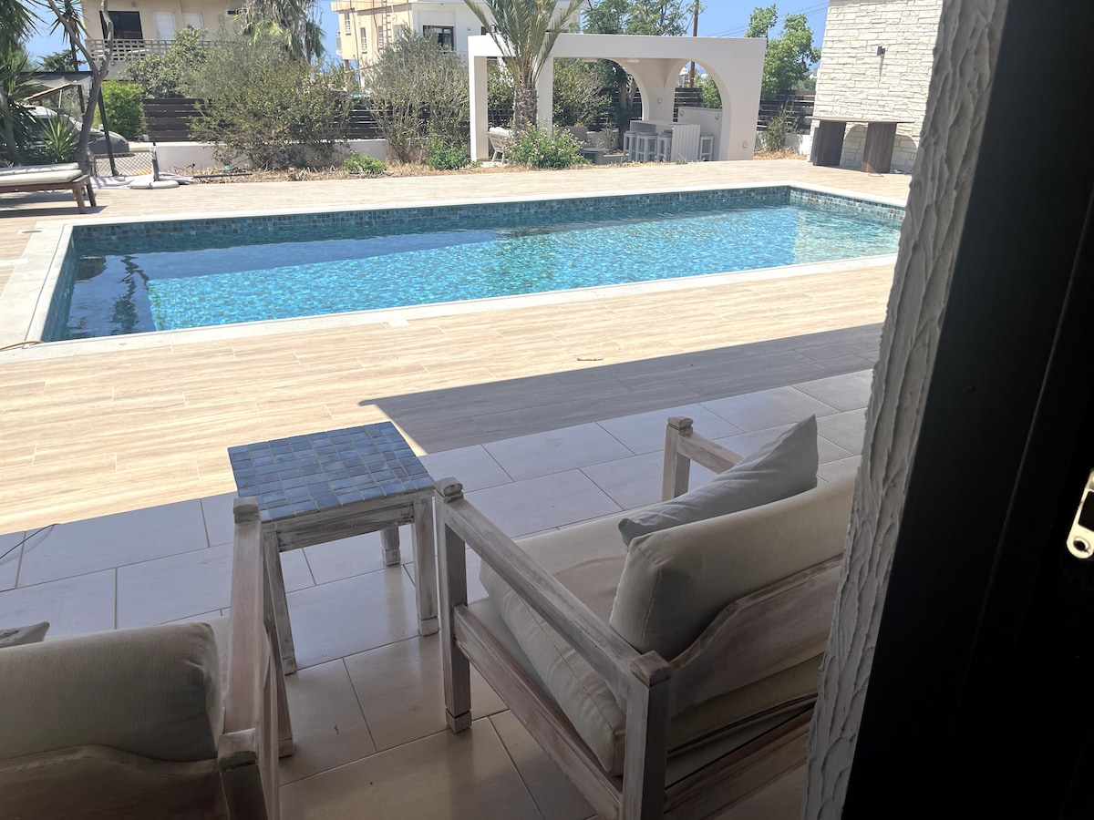 Relax in comfort and style at Villa Leda, where our private guest wing offers a self-contained area of the villa with its own entrance. Enjoy the pool and relax on the patio. Perfect for couples or solo-travellers seeking relaxation in a quiet setting. Location is ideal, in a peaceful part of Paphos away from the tourist crowds where you can experience the charm of the real Cyprus, yet only minutes from city centre and highway. Fresh bakeries and a local supermarket are only a short walk away.
