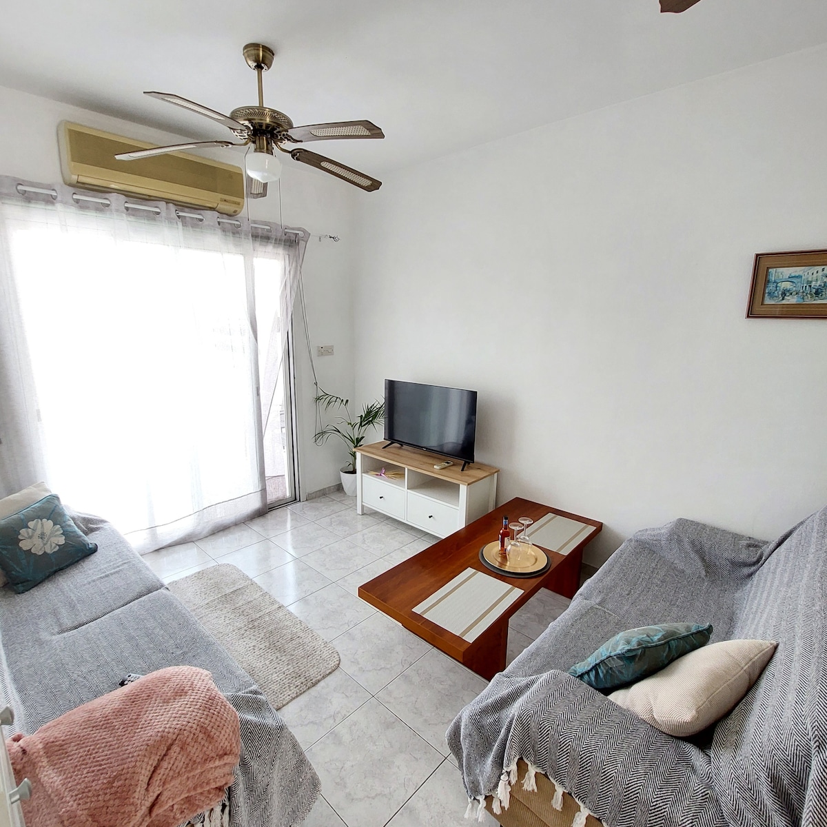 Welcome to Rhodes Gardens in the heart of Paphos! 🌴 This cozy retreat is perfect for couples and solo travelers. Enjoy a spacious bedroom with a King-size bed 🛏️, a cozy living room with TV, a fully equipped kitchen 🍳, and a clean bathroom. Highlight: Access to a lovely shared pool 🏊♂️! Prime location: 15-min walk to beaches 🏖️, 10 mins to Kings Avenue Mall. Markets just 30m and 300m away. ✅ Free Wi-Fi 📶, parking 🚗, and easy self check-in 🔑. We look forward to hosting you!