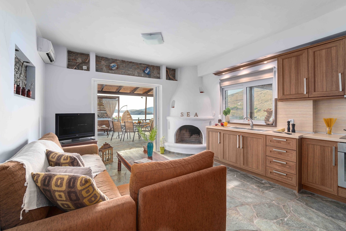 Makaranas ng isang tunay na natatanging pamamalagi sa aming Cycladic sea house, kung saan ang kasaysayan ay nakakatugon sa kaginhawaan. Matatagpuan sa isang burol, nagtatampok ang kapansin - pansin na bakasyunan na ito ng higaan na itinayo sa loob ng mga sinaunang pader na bato. Matulog na napapalibutan ng mga echoes ng nakaraan, habang ang mga nakapapawing pagod na tunog ng dagat ay humihila sa iyo sa isang mapayapang pag - idlip. Gumising sa mga nakamamanghang tanawin mula sa bawat anggulo, habang inihahagis ng araw ang ginintuang glow nito sa kumikinang na tubig. Napapalibutan ka ng mga nakamamanghang tanawin ng dagat, kaaya - ayang katahimikan at katahimikan.