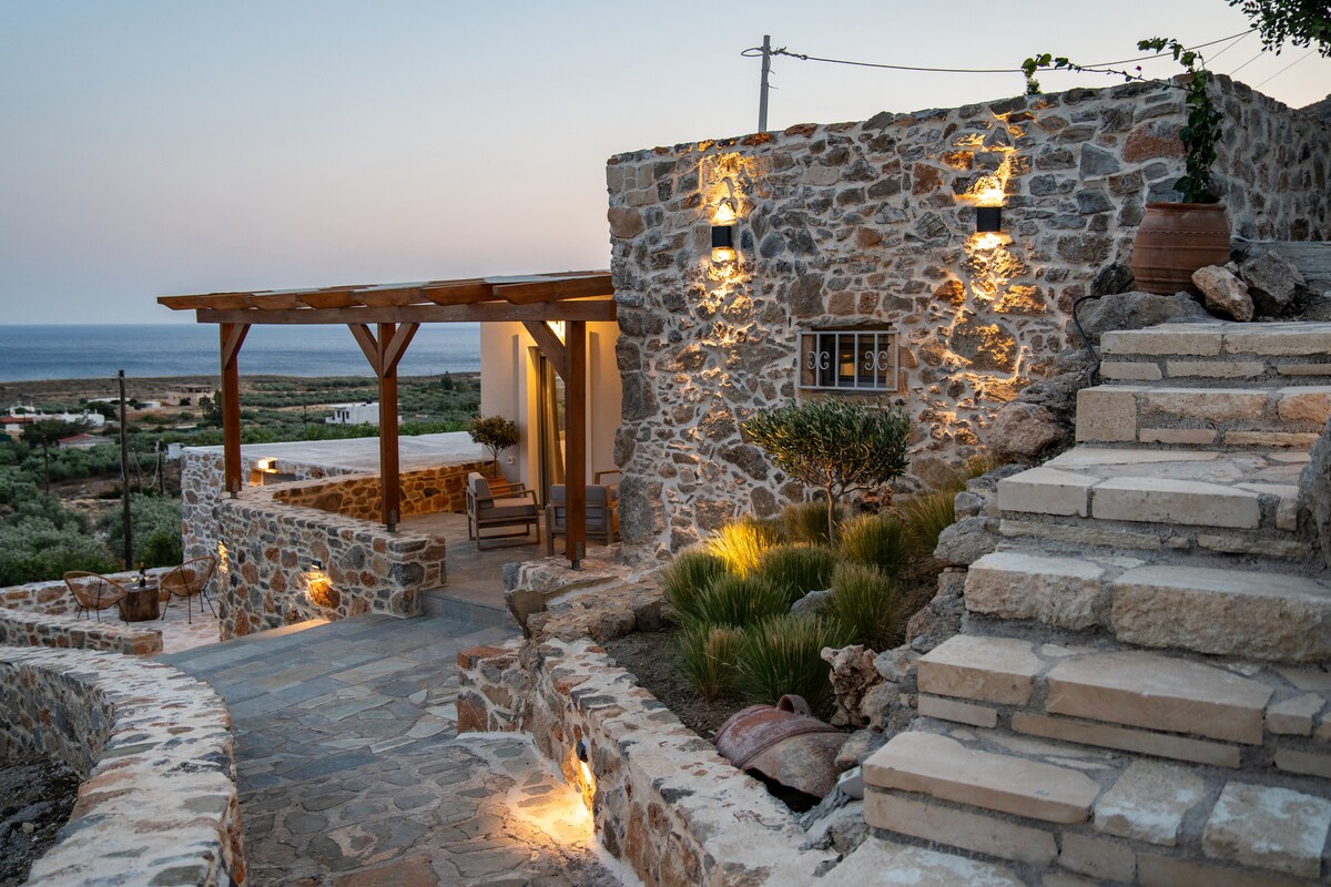 Charoupia cottage is part of 300 years old small hamlet, it is a Petite traditional cottage suited on the hillside among olive groves and carob trees overlooking the Mediterranean sea. In the valley of the White River and the gorge of Pefki Ideal for nature lovers, only 900m from the beaches, tavernas and shops of harbour town Makrigialos at the foot of the Pefki Gorge this area offers fantastic opportunities for those who love walking & nature With high speed internet & top quality mattresses