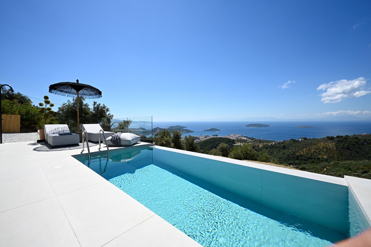 Ang mesmerizing Pelagoon Villa sa tahimik na nayon ng Achladies sa Skiathos Island, ay isang magandang halimbawa ng minimalism at kontemporaryong arkitektura. Ipinagmamalaki ng chic home ang mga kahanga - hangang tanawin sa ibabaw ng glistering Aegean Sea at madaling isa sa mga pinaka - pambihirang villa sa isla. Makikita sa mga puno ng olibo at verdant na halaman, ito ang perpektong kanlungan para sa mga naghahanap ng katahimikan at pag - iisa sa panahon ng kanilang pamamalagi.