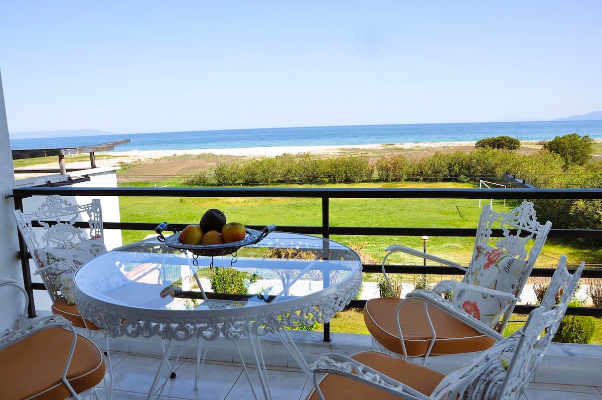 Beachfront apartment sa magandang Asprovalta, magagamit para sa upa. Nag - aalok ang naka - istilong tirahan na ito ng komportable at functional na espasyo, na may maluwag na sala, kusinang kumpleto sa kagamitan, dalawang silid - tulugan at banyo. Moderno at pinag - isipan ang dekorasyon, habang nag - aalok ang terrace ng eclectic view sa dagat. May shared garden at libreng paradahan ang apartment. Ang lokasyon ay napaka - maginhawa at ang beach sa harap ng apartment. Perpekto para sa isang nakakarelaks na bakasyon sa magandang Asprovalta.