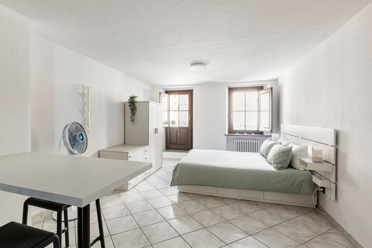 Maaliwalas at mainit - init na apartment sa Aosta, penultimate floor, elevator, maliwanag, malaking balkonahe na nakaharap sa timog kung saan matatanaw ang mga bundok sa tahimik na setting na napapalibutan ng isang communal garden. Perpekto para sa pagbisita sa Aosta o panimulang punto para sa mga nakapaligid na lambak (7 minuto sa pamamagitan ng kotse para sa cable car ng Aosta - Pila). Ang organic supermarket na wala pang 80 metro at pizzeria - restaurant na wala pang 50 m. Binubuo ng kuwarto, banyo, kusinang may kagamitan, sala na may sofa bed, balkonahe.