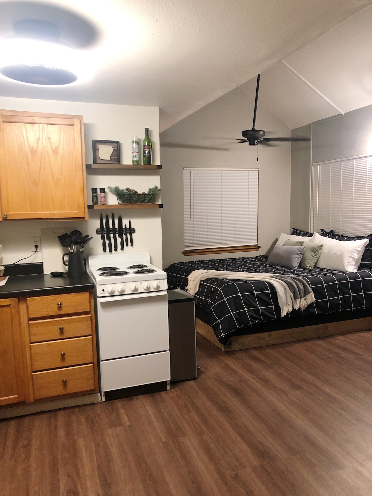 Lahat ng mayroon ka sa isang premium na kuwarto sa hotel, maliban sa telebisyon at WiFi. Nakakakuha kami ng mahusay na cellular at 5G reception. Matatagpuan sa Arkansas Wine Country na nakaupo sa paanan ng Boston Mountains ng Ozarks. May magandang katangian ang kuwarto at may tanawin ng paglubog ng araw para sa mga edad. Hindi tumitigil ang tanawin kapag natutulog ka. Ang skylight ay nagbibigay ng magandang tanawin ng langit. Isang milya lang mula sa I -40 exit 41 South sa Highway 186.