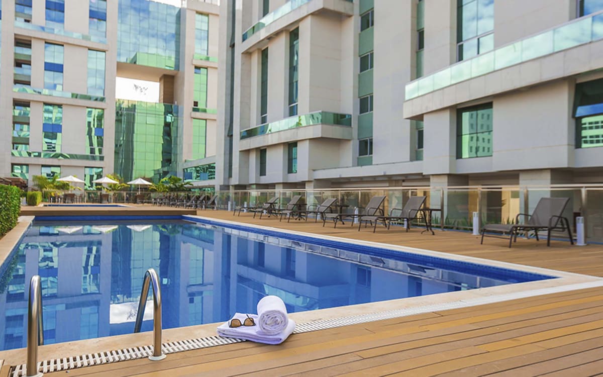 Mapayapang magtrabaho at magpahinga. 9min mula sa paliparan, 4 km mula sa Lake Paranoá at sa tabi ng Casa Park at Park Shopping. 4 - star na estruktura na may 4 na pool (semi - olymic ang pinainit) sauna at gym. 24/7 ang business center, reception, at restaurant. Ang Apto ay may microwave, kalan, minibar, water filter, coffeemaker, kaldero, blender, sandwich maker at mga kagamitan. Nilagyan ang banyo ng hairdryer at safety bar. May ekstrang kumot, plantsa at board sa kabinet. Napakagandang wifi at Smart ang TV.