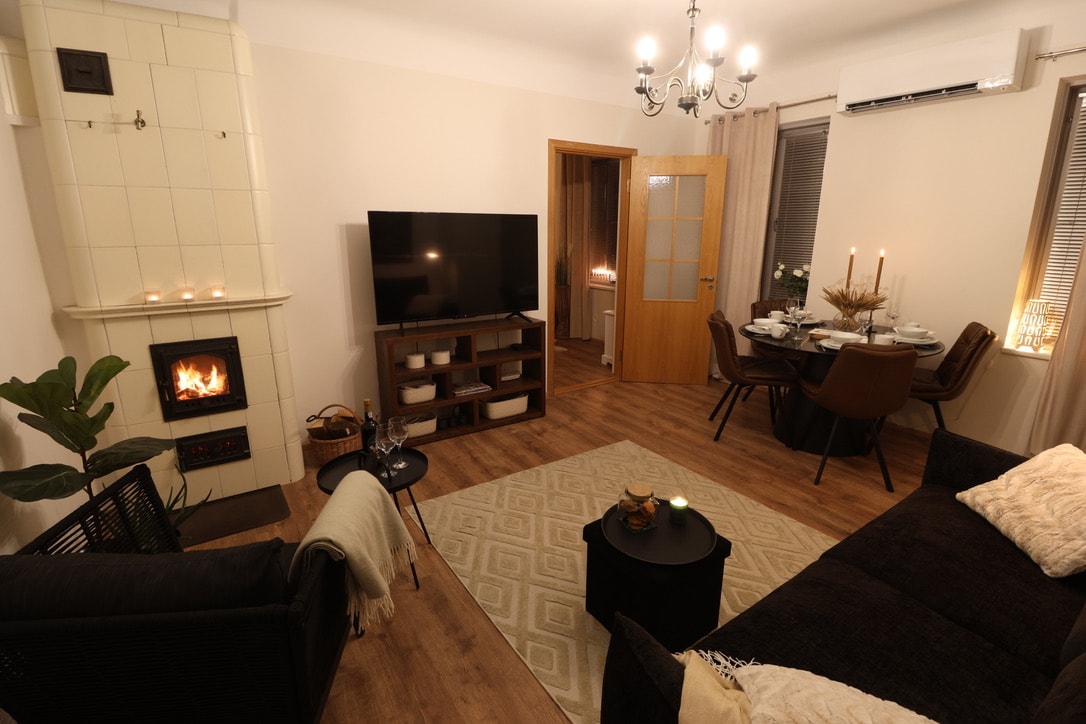 Mag‑enjoy sa komportableng pamamalagi sa modernong apartment namin sa gitna ng Pärnu—malapit lang sa teatro, mga cafe, at kaakit‑akit na sentro ng lungsod. Malapit din ang beach, perpekto para sa tahimik na paglalakad kahit sa malamig na taglamig. Pagkatapos libutin ang bayan, magrelaks nang may mainit na inumin sa pribadong balkonahe o magpahinga sa loob ng komportableng sala. Bibisita ka man para sa tahimik na bakasyon, weekend sa teatro, o business trip, mayroon sa apartment na ito ang lahat ng kailangan mo para sa magandang pamamalagi sa taglamig.