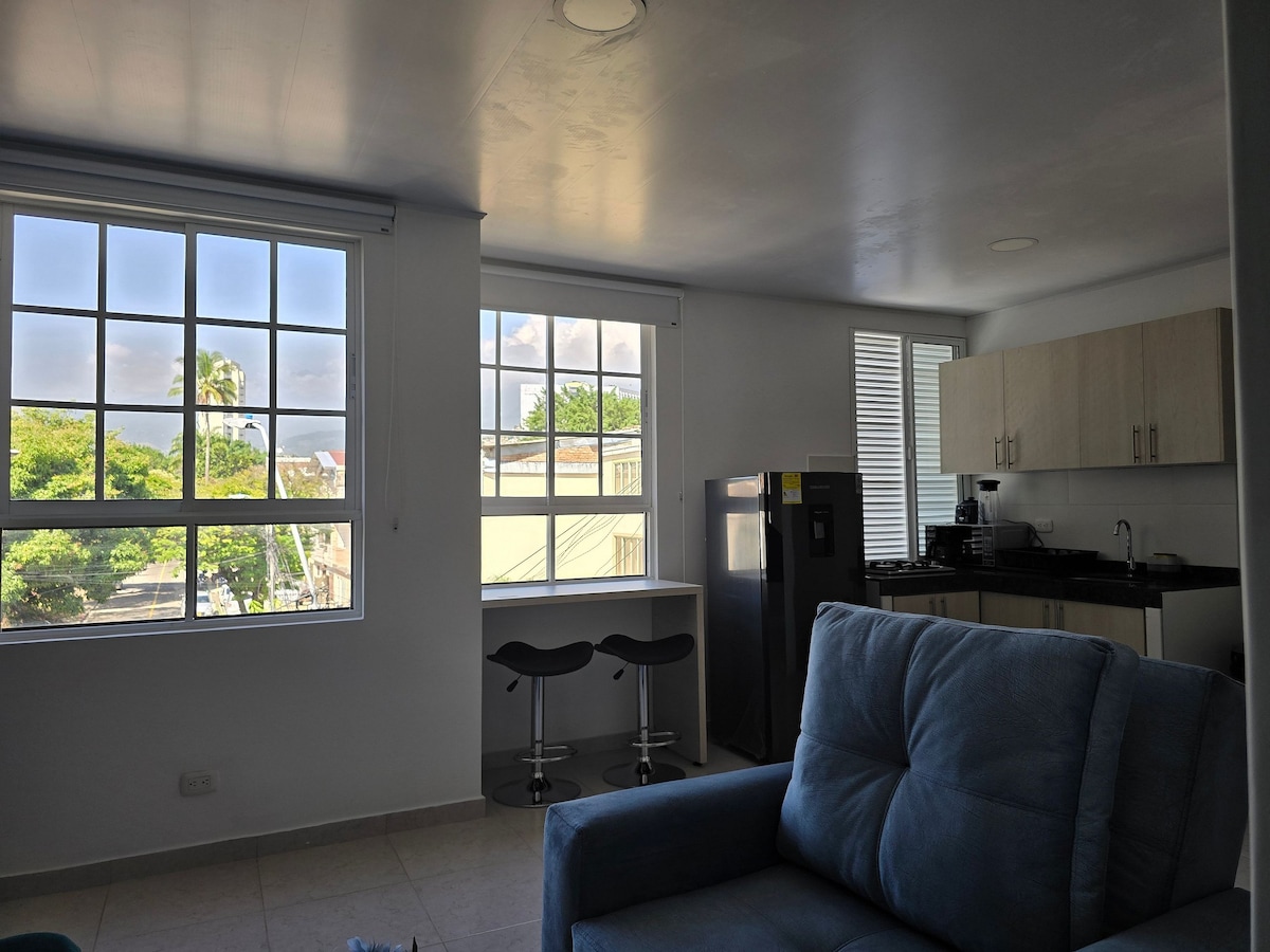 Huwag mag - atubili habang binibisita mo ang magandang lungsod ng Cali. Ito ay isang marangyang suite na may lahat ng kailangan mo para magkaroon ng kaaya - ayang oras, na matatagpuan sa isang mapayapang upscale na kapitbahayan, napaka - sentro, maigsing distansya papunta sa Parque del Perro. Pinagtuunan namin ng pansin ang bawat detalye. Makakakita ka rito ng kumpletong kusina, 1 buong paliguan, maliit na lugar sa opisina, at mainit na tubig para sa nakakarelaks na shower. Smart TV para sa entertainment, WIFI, WIFI, at marami pang iba. Gusto talaga naming maramdaman mo na nasa bahay ka lang!.