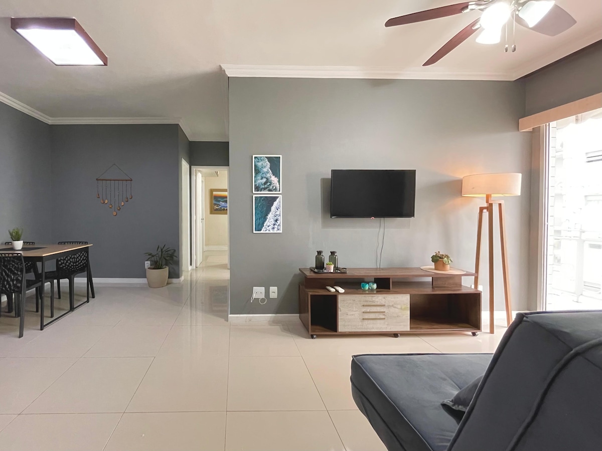 Kaakit-akit at komportableng apartment, perpekto para sa mga pamilya o magkakaibigan. 2 kuwarto (queen + double suite) at sala na may sofa bed, lahat ay may air conditioning, Smart TV at malaki at maliwanag na balkonahe. Kumpletong kusina na may washer at dryer, duplex refrigerator, airfryer, coffee maker (electric at Nespresso). May mabilis na wifi at hair dryer. Ang lokasyon ay strategic: 5 minuto lamang mula sa Farmasi Arena, Olympic Park, RioCentro at Projac, at 10 minuto mula sa mga beach ng Recreio, Reserva at Barra da Tijuca.