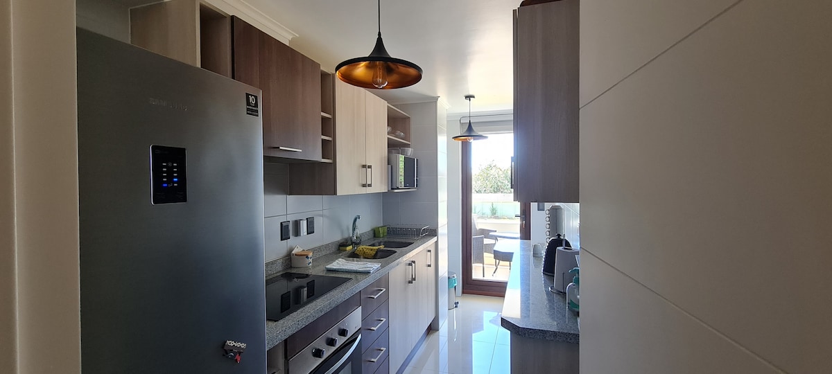 Masiyahan sa kaginhawaan at estilo sa apartment na ito na may kumpletong kagamitan, na may estratehikong lokasyon na may access sa Av. Picarte at Costanera, ilang minuto lang mula sa sentro ng Valdivia. - Living - dining room - Kumpletong kusina: de - kuryenteng oven, hood, microwave, dishwasher, refrigerator, kettle, toaster, coffee maker at blender. - Banyo na may de - kuryenteng heater, bakal, hair dryer at mga tuwalya - Kuwarto na may double bed. - Terrace - Wi - Fi 800mbps - May bubong na paradahan sa loob ng gusali.