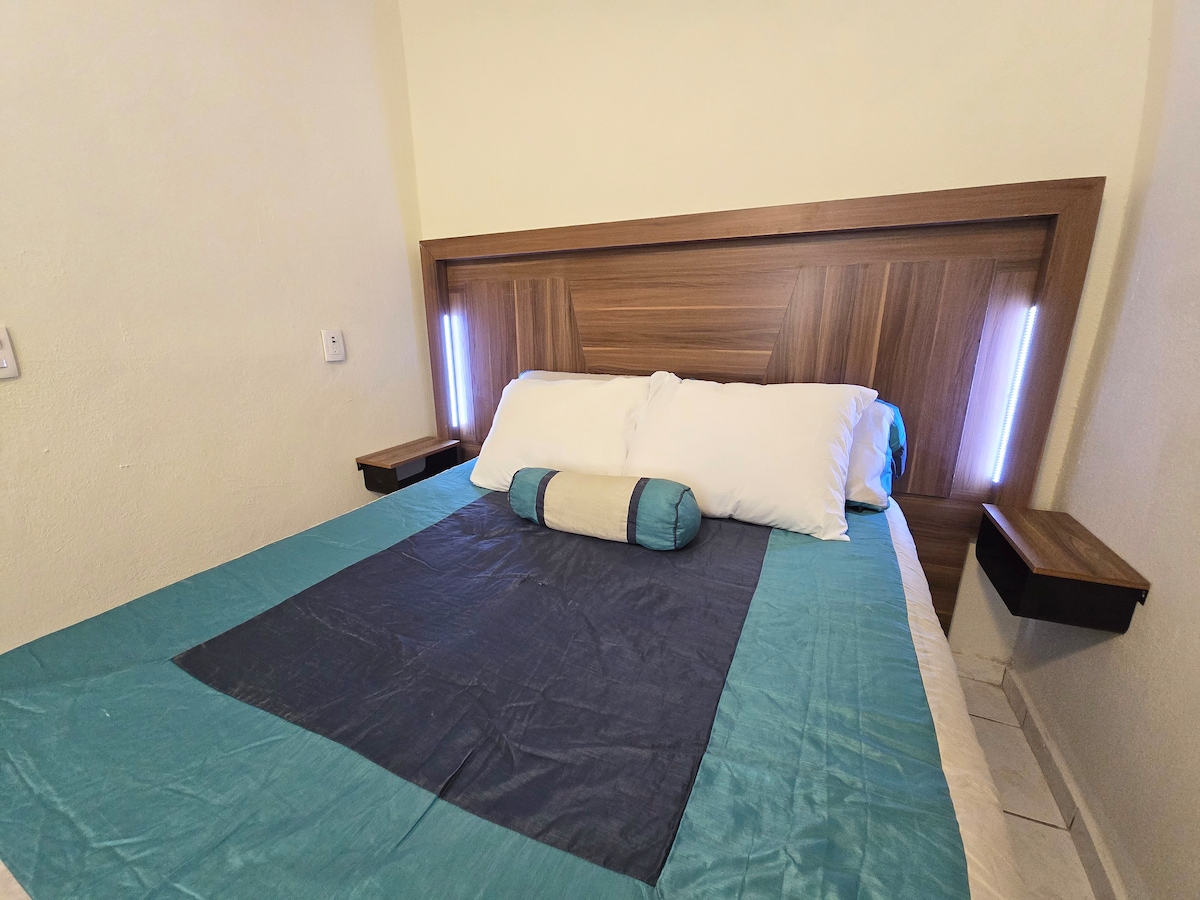 Disfruta de una experiencia con estilo en este alojamiento céntrico en Parras, en este cómodo y moderno departamento. El alojamiento cuenta con: -Habitaciones cómodas con todo lo necesario para tu descanso. -Internet de alta velocidad y TV. Su ubicación te permitirá estar cerca de los principales viñedos, restaurantes, atractivos turísticos y el centro histórico de Parras. Ya sea que viajes en pareja o por trabajo, aquí encontrarás el lugar perfecto para disfrutar de la tranquilidad.