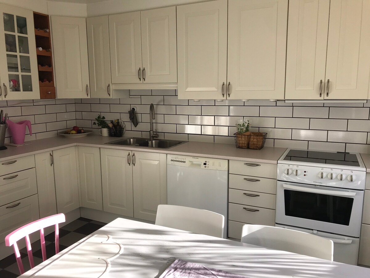 Maligayang pagdating sa isang malaking villa sa Partille, 12 km sa silangan ng Gothenburg. May 2 minutong lakad ang villa mula sa hintuan ng bus na magdadala sa iyo papunta sa sentro ng Gothenburg sa loob ng humigit - kumulang 25 minuto. Kung darating ka sakay ng kotse, maraming espasyo sa labas para iparada ang iyong kotse. 4 na minutong lakad ang layo ng pinakamalapit na grocery store. Sa loob ng 4 na minutong lakad, makakarating ka rin sa maliit na lawa para sa paglangoy. Dumadaan ang mga hiking trail at mga track ng ehersisyo malapit sa bahay. 5 minutong biyahe ang layo ng shopping center na may mahigit 100 tindahan.