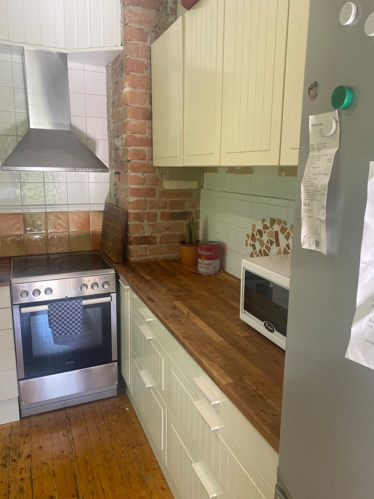 Welcome sa komportable at bagong basement apartment na 25 sqm na may sariling entrance at sariling pag‑check in. Nasa tahimik na residensyal na lugar ang apartment. Hindi pinapahintulutan ang paninigarilyo at kami, ang mga host, ay nakatira sa iisang bahay at masaya kaming tumulong. Kuwartong may bagong smart TV at bagong higaan na 140 cm para sa 1 -2 tao. Kumpletong kusina at pribadong toilet. Ang pinaghahatiang lugar ay shower, washing machine at dryer. May pribadong paradahan ng sasakyan o hintuan ng bus na 1 minutong biyahe mula sa property, at may mga tindahan at restawran sa malapit. Maligayang pagdating!