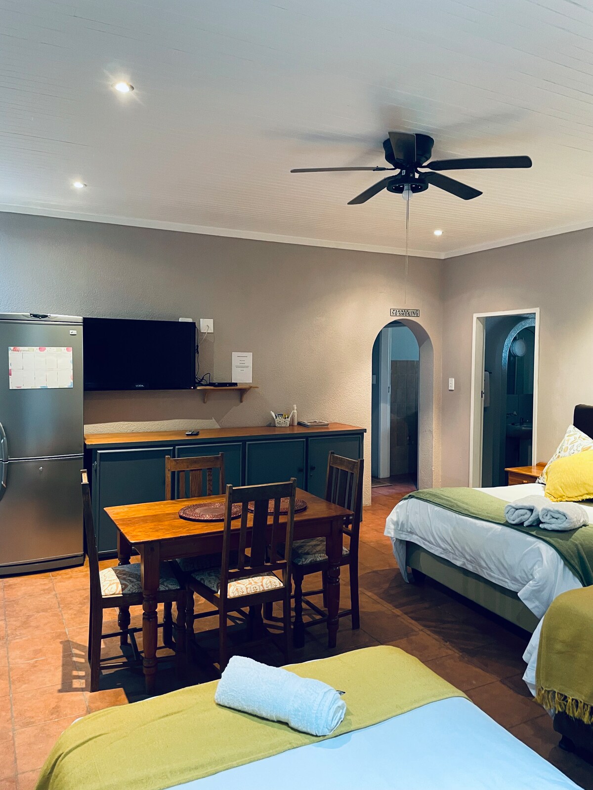 Escape to this cozy one-bedroom, one-bathroom cottage with an open-plan kitchen and lounge, complete with a TV and indoor fireplace. Perfect for couples or solo travelers, the cottage offers comfort and relaxation. Conveniently located near the Vaal River and local shops, it’s ideal for a peaceful getaway or exploring the charm of Parys.