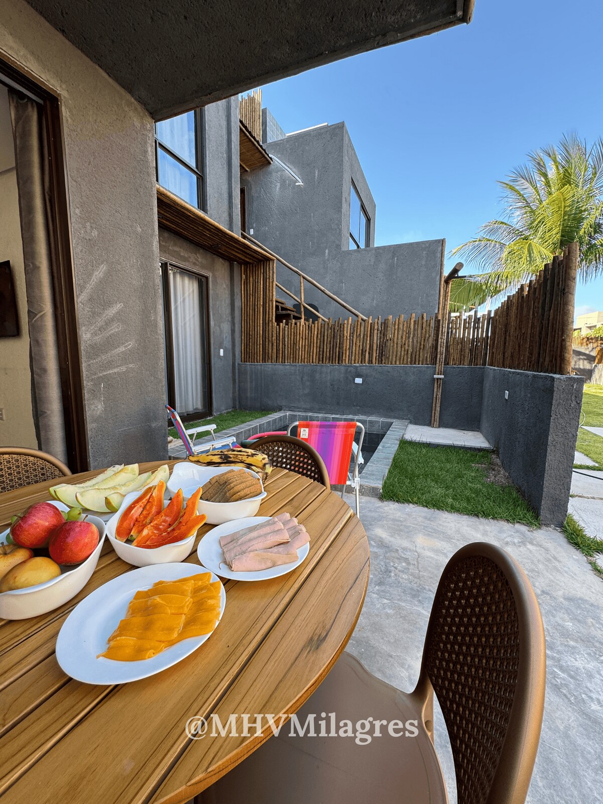 100 metro ang layo ng Casa Tropí mula sa beach at 2 minuto mula sa Chapel of Miracles. Nilagdaan ng proyekto ang @agalemosarquitetos. Mayroon kaming: - Nakakabit ang condo. - Tropikal na Landscape - 5 en - suit - 2 lavabos - Maluwang na sala na silid - kainan - Varadão - Swimming pool sa natural na bato na may hydro - Panlabas na lugar na may barbecue area - Winery, 1 brewery at 2 refrigerator. - Solar heating - Kasama ang lutuin (dakot) at kasambahay - Wifi - Service suite para sa 2 empleyado.