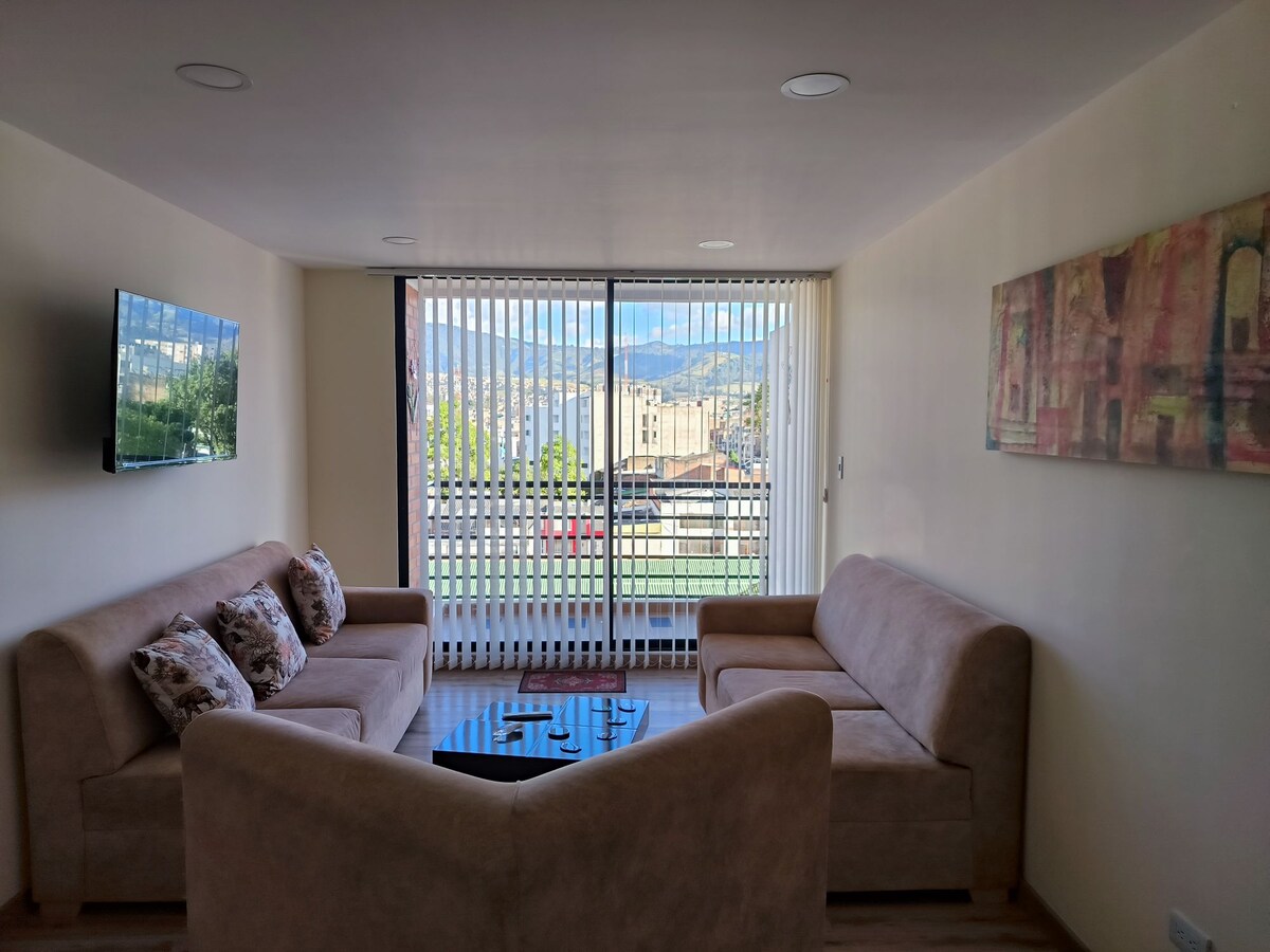 Maluwag at komportableng apartment sa Pasto, malapit sa downtown, pangunahing shopping mall, at mga bangko. Ilang bloke mula sa Black and White Carnival trail, sa isang madaling puntahan at madaling ma-access na lugar. Mainam para sa mga pamilya, malapit sa Unicentro at sa mga pinakasikat na simbahan sa lungsod. Mayroon itong pribadong paradahan.