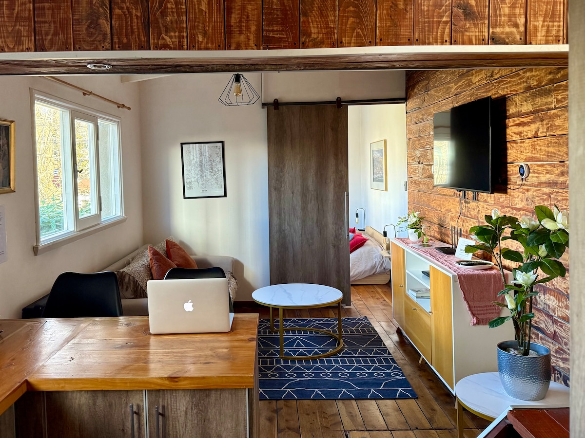 Spacious 450 sq ft loft located right on the Nahuel Huapi lakeshore. The open views are hard to beat. But the inside certainly looks cool too… Wood. Iron. Seamless micro-cement floors. Feel like cooking? Enjoy the view sitting by the black granite kitchen island. Feel like dining out? Trying out local beers? The loft is located at walking distance from the city center. Close enough to enjoy the local buzz, far enough to fall asleep to the sound of the lake.