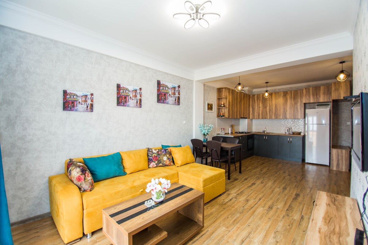 Natutuwa akong ipakilala sa iyo ang aking apartment sa Tbilisi. Nilagyan ito ng lahat ng kinakailangang amenidad at pasilidad para sa maikli at mahabang pamamalagi. Mag - enjoy sa iyong pamamalagi sa isang mapayapang apartment. •Wi - Fi • Flat Screen TV • Kusina na may lahat ng mga accessory; • Kumpletong banyo na may lahat ng mga accessory; • Sistema ng air - conditioner/Pag - init • Balkonahe na may sofa at magandang kapaligiran 2 minuto papunta sa istasyon ng bus 10 minuto sa istasyon ng metro samgori (na may bus) 150 metrong departamento ng pulisya 2 minuto ang parke