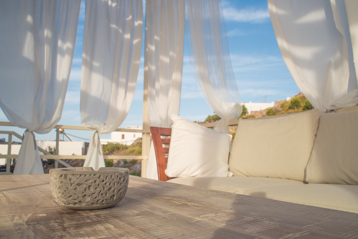 Magugustuhan mong ibahagi ang natatanging lugar na ito sa iyong mga kaibigan. Matatagpuan ang Studio Apartment na ito sa tahimik na bahagi ng Hora Patmos. Madaling ma - access gamit ang mga sasakyang de - motor o bisikleta. Ito ay bagong itinayo at naka - istilong inayos. Nagpapahiram ito ng mga walang harang na tanawin ng bahagi ng bansa at pati na rin ang makinang na asul na Mediterranean view ay hindi nabigo. Homey at masayahin, nababagay ang Apartment sa mag - asawa o nag - iisang biyahero na naghahanap ng tahimik na summer escape