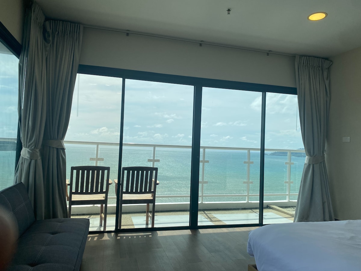 Noong itinayo ang villa, mahusay na ginamit ng mga designer ang lupain ng mga lokal na burol para itayo, na nangangahulugang mapapansin mo ang buong Patong Bay sa sala, pool, kuwarto.Mag - snuggle sa tabi ng pool kasama ng iyong kasintahan, makinig sa mga romantikong kanta, tikman ang pulang alak at tamasahin ang paglubog ng araw sa baybayin at ang tanawin sa gabi ng baybayin.O tingnan ang isang libro at tikman ang kape at tamasahin ang simoy at makinig sa mga tunog ng kalikasan.Mula sa villa hanggang sa Patong Beach at Shopping Mall, 5 minuto lang ang layo ng Banzaan Seafood Market.Para sa mga kampo ng elepante sa dagat at kagubatan sa pamamagitan ng mga kampo, 8 minuto lang ang National Forest Park.2 silid - tulugan ang bawat isa ay may pribadong banyo at banyo na may king bed at matatagpuan sa parehong palapag.Ganap na nilagyan ang kusinang may bukas na plano ng mga kasangkapan sa Europe.May silid - kainan na may espasyo para sa 6 na tao, na kumokonekta sa sala.Nag - aalok ang sala, na direktang papunta sa outdoor landscaped deck at pribadong pool, ng isa pang perpektong lugar para masiyahan sa tanawin ng dagat.Puwede ka ring direktang sumakay ng elevator papunta sa terrace sa tuktok na palapag para masiyahan sa sunbathing at magagandang tanawin.Ang aming villa ay may matataas na puno na natural na lumalaki at natatanging hugis.Ito ay napaka - kahanga - hanga at nagpaparamdam sa iyo ng mahusay at mahiwaga ng kalikasan.May paradahan ang villa para iparada mo ang iyong kotse o motorsiklo.500 metro mula sa villa ay may isang restawran na ginawa western food, ang pizza at thai taste ay medyo masarap, ang restaurant ay sumusuporta sa paghahatid sa oras ng negosyo, mayroon ding isang coffee shop at isang bar sa tabi, mayroon ding isang convenience store 200 metro pa doon ay isang convenience store na maaaring matugunan