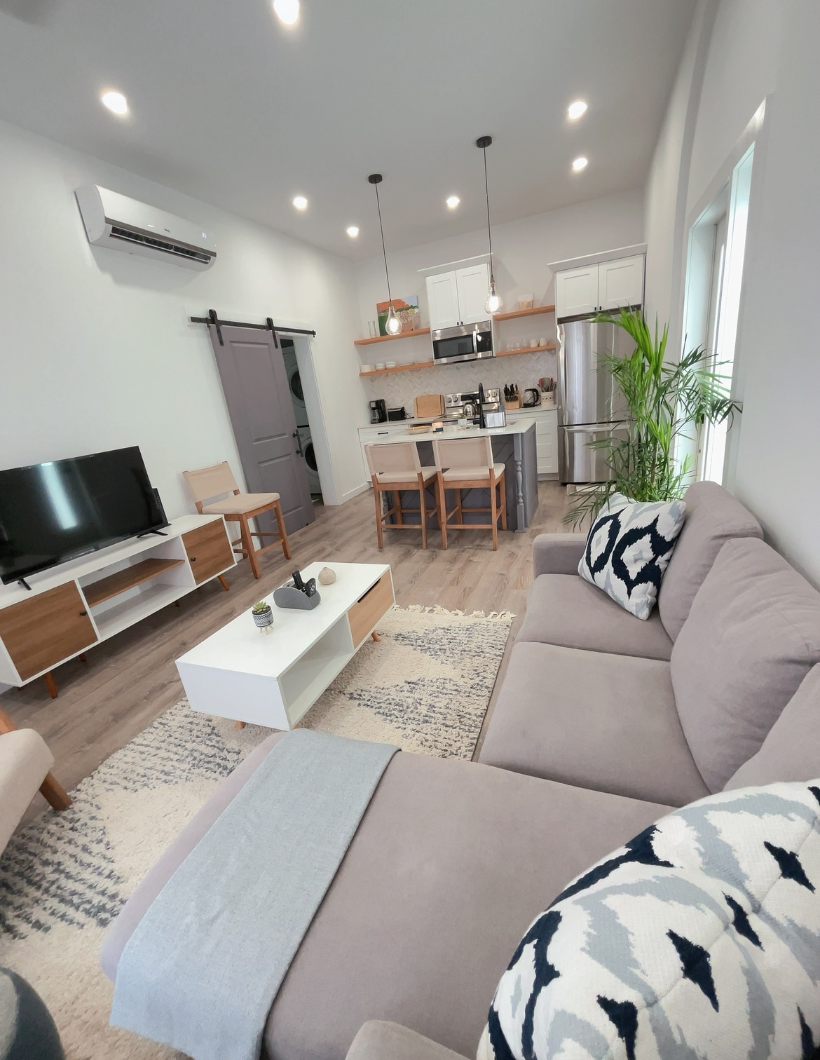 Welcome to this private cozy studio in the vibrant heart of George Town! Lokated 10-15 minute walking distance to Smiths Cove Beach, this is separate unit with an independent entry. Has a bedroom, kitchenette, washer dryer, bathroom and designated parking spot. Located in George Town near hospitals, pharmacy, gas station and restaurants. Bedroom has queen bed, split A/C, smart TV and Internet. Private outside patio with seating and a hammock.