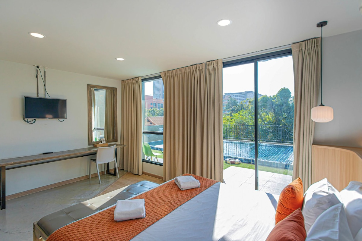 Matatagpuan sa gitna, nagsisikap ang Max Residence na maging mahalagang lugar para sa mga biyaherong nagpaplanong bumisita sa Pattaya na may natatanging disenyo nito! Nilagyan ang kuwartong ito ng queen - sized na higaan, maliit na telebisyon, safety box, mini fridge, at pribadong banyo, air conditioner, bote ng tubig, tuwalya, at mga pangunahing gamit sa banyo. Ang mga hair dryer at kettle ay ibinibigay kapag hiniling sa aming front desk. Tandaang nasa likuran ang lahat ng kuwartong 'Karaniwang' walang partikular na tanawin ng bintana.