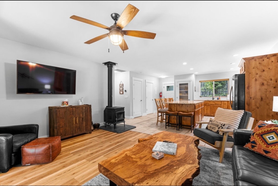 Isa itong tunay na bakasyunang bundok mula sa dekada 1960 na may natatanging kagandahang A-frame. Perpekto ito sa anumang panahon dahil mayroon itong mga bintanang mula sahig hanggang kisame na may mga tanawin ng kagubatan sa paligid. Nakalatag sa 3 palapag, 2-1/2 banyo (1 sa bawat palapag) at 4 na tulugan: kayang tumanggap ng 8 (+) tao sa 6 (+) higaan (2 king!). Magandang firepit. Malapit sa skiing, bayan, lawa, mga trail, at golf. Sundin ang proseso ng pag-check out=25% ng bayarin sa paglilinis ang maire-refund. Basahin ang LAHAT NG alituntunin sa tuluyan. May kontrata. Magtanong kung hindi available ang gusto mong araw—puwedeng mabuksan ang ilang naka-block na araw.