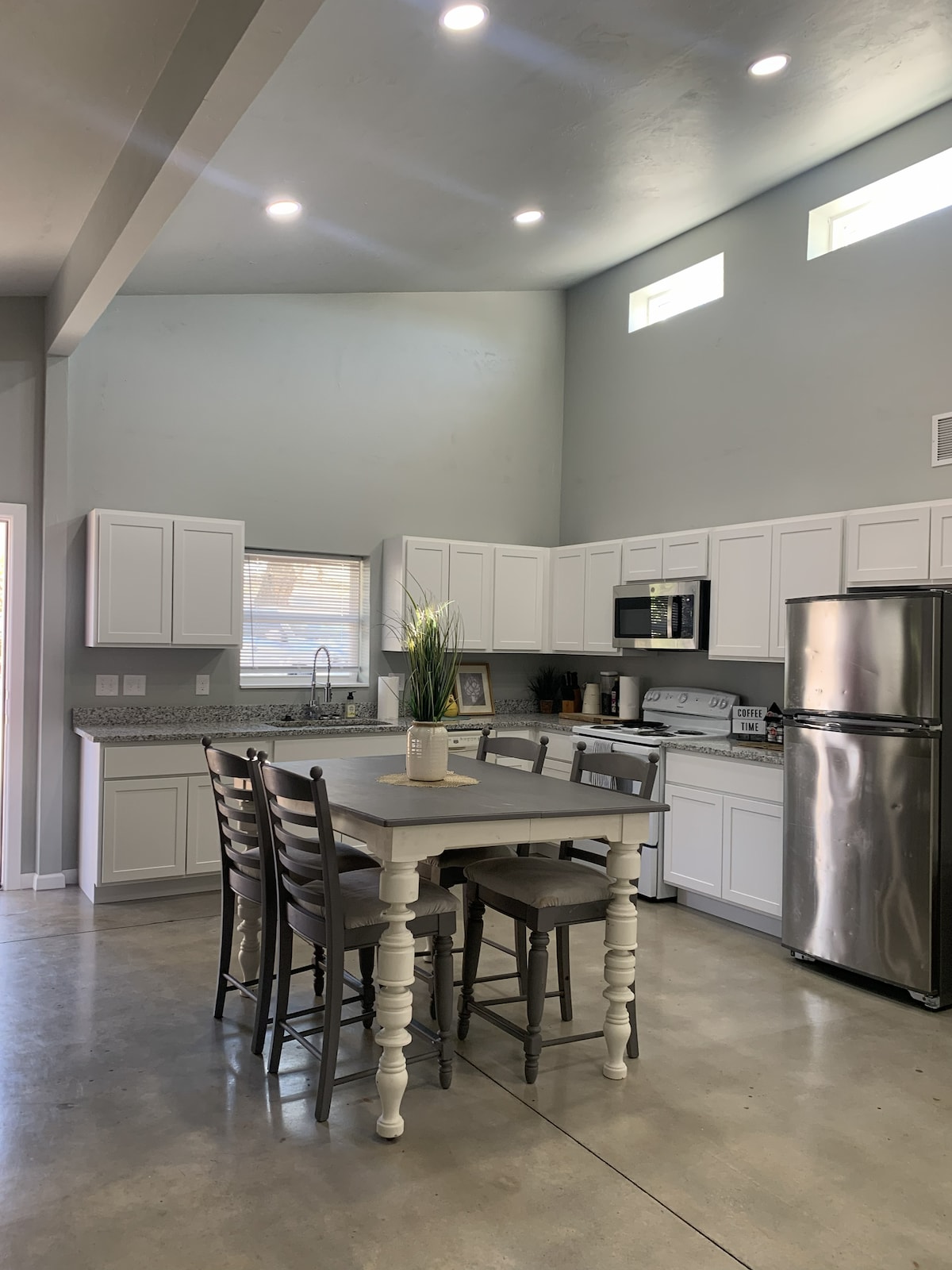 Maging malapit sa lahat - maginhawang matatagpuan ang 1 bloke mula sa pangunahing kalye - kaya madaling planuhin ang iyong pagbisita. Nagtatampok ang aming smart enabled na tuluyan ng bukas na floor plan mula sa dining nook at coffee bar na may Kuerig, sa pamamagitan ng gally kitchen hanggang sa sala na nagtatampok ng mga roku tv at komportableng queen bed sa bawat kuwarto , wifi, washer/dryer, privacy fenced area na may gill at fire pit - ganap na na - eqipped ang Roadrunner kasama ang lahat ng amenidad ng tuluyan para sa iyong pamamalagi. Pribadong pakiramdam sa isang tuluyan na may gitnang kinalalagyan.
