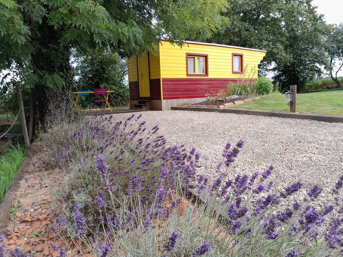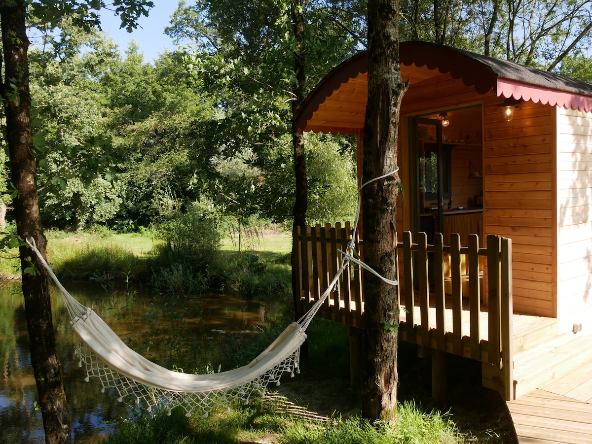Trailer na makikita sa tubig ng isang wooded pond, na may sun terrace na sumisikat sa harap ng alpaca meadow. Banyo sa mga stilts na nakakonekta sa trailer. Isang berdeng setting na may birdong at bola ng mga palaka. BBQ. Posible ang pangingisda sa pamamagitan ng pagdadala ng kanyang kagamitan. Mula noong paglaganap ng Coronavirus, nagsasagawa kami ng higit na pag - iingat para disimpektahan ang mga madalas hawakan na bahagi sa pagitan ng mga reserbasyon at 48 ORAS na pamamalagi.