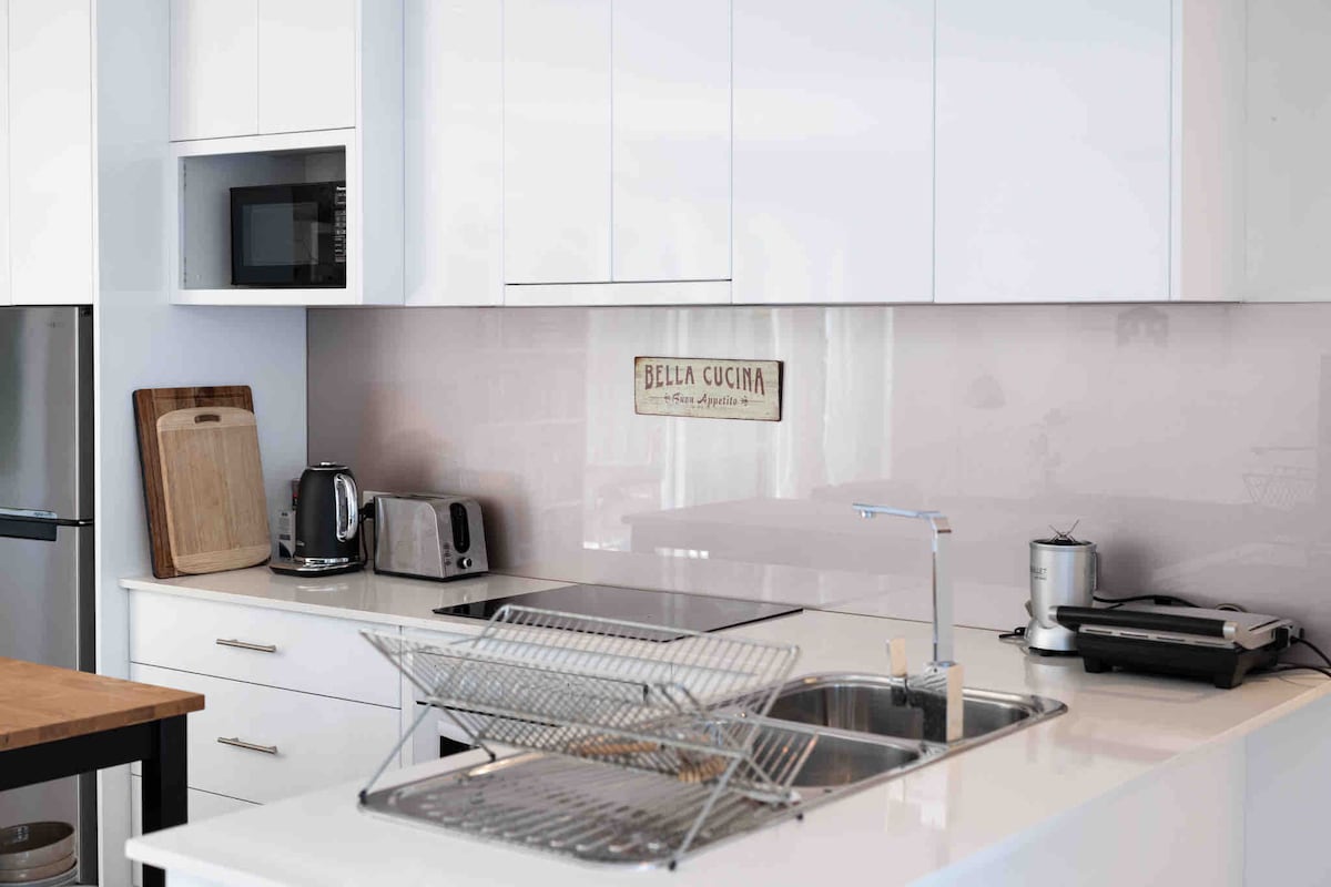 Maikling flat na lakad papunta sa Beach, Mga Cafe at Restaurant