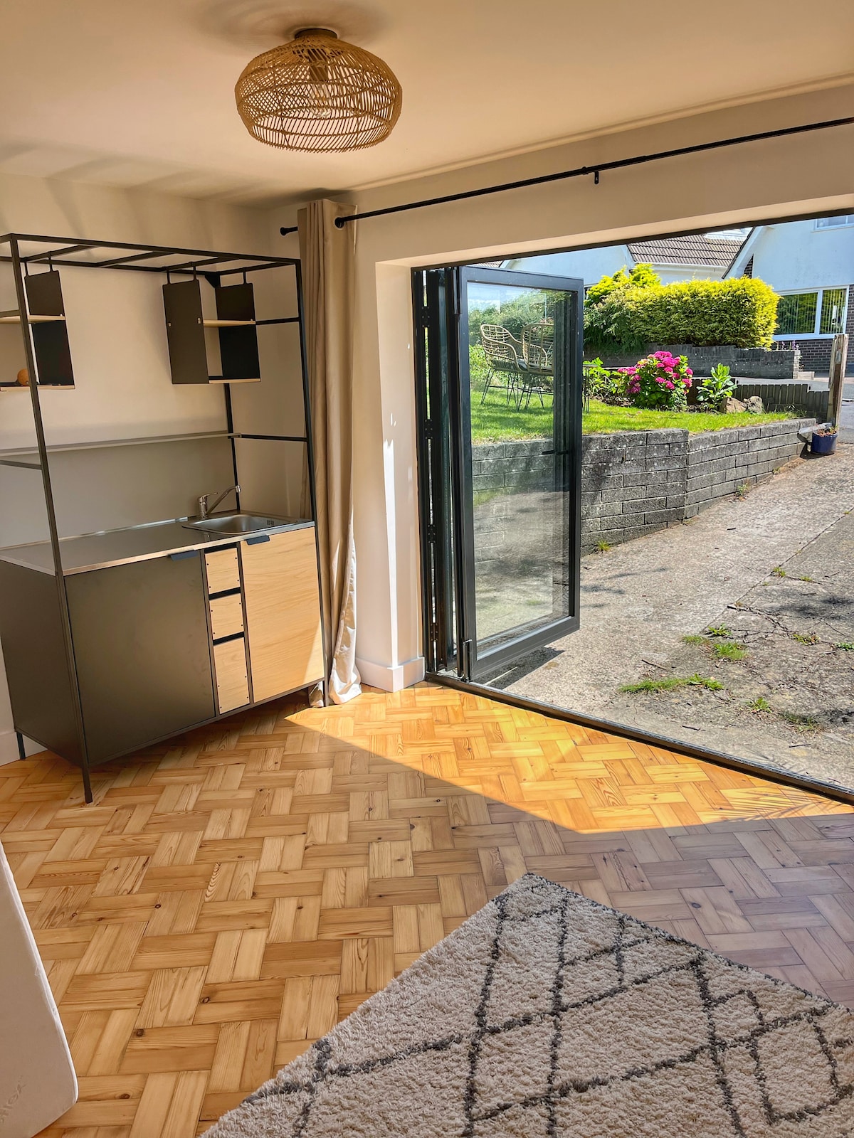 Your space is on the ground floor of our sea-front home in Mumbles, offering uninterrupted views of Swansea Bay. From the suite, you can see Mumbles Lifeboat Station to the right and Oystermouth Castle to the left. The suite features a king-size bed, corner sofa (also a sofa bed), full size fridge, table and chairs, a work desk, storage, shower room, 50” TV, and WiFi. Trampoline at the back. Please note, no cooking facilities are provided but we do have bowls, plates, glasses etc.