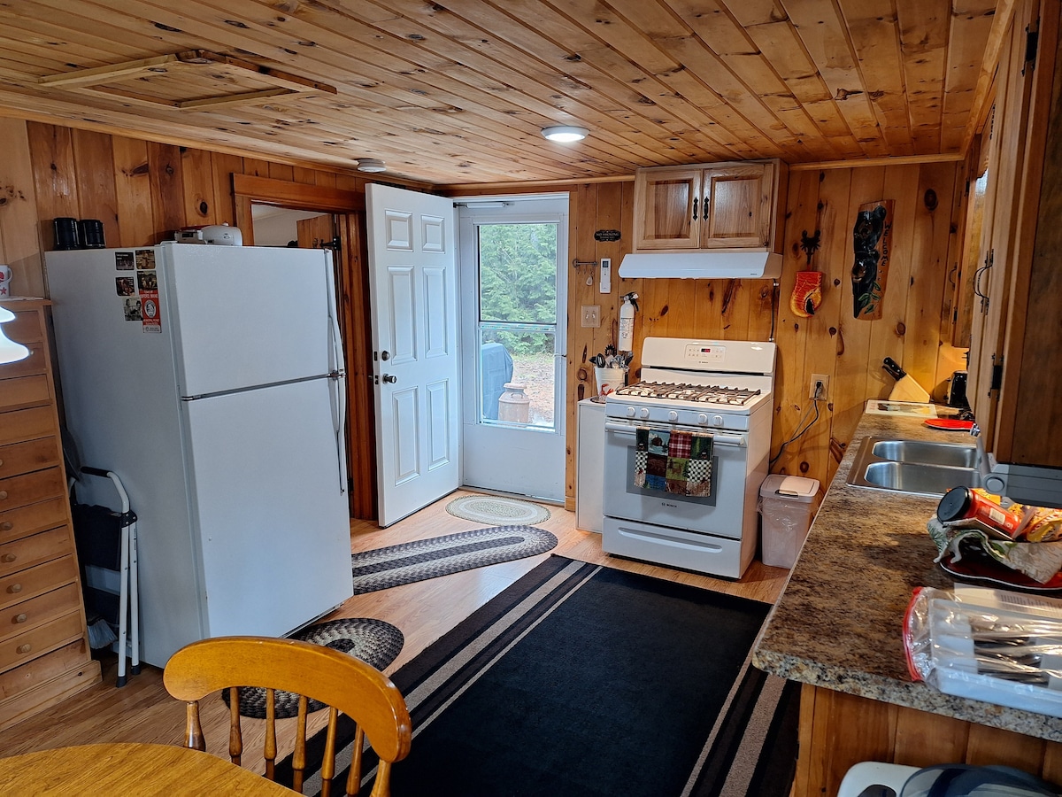 Isang refurbish 1967 knotty pine Cottage na maikling lakad papunta sa lawa at may mga karapatan sa lawa. Matatagpuan 400 metro mula sa access sa lawa. Para sa paglangoy, LIBRENG docking para sa iyong bangka para mangisda, mag - water ski o mag - cruise lang sa Thompson lake. 14 milya ang isa sa mga pinakamalinis na lawa sa Maines. 6 na Bisikleta, 2 - kayaks, 2 -16 ft canoes, 14 ft rowboat, at paddle boat, fishing gear, firewood na available para sa bisita nang walang bayad para sa fire pit. Available ang mga barbeque ng propane at uling sa cottage. WALANG WIFI.