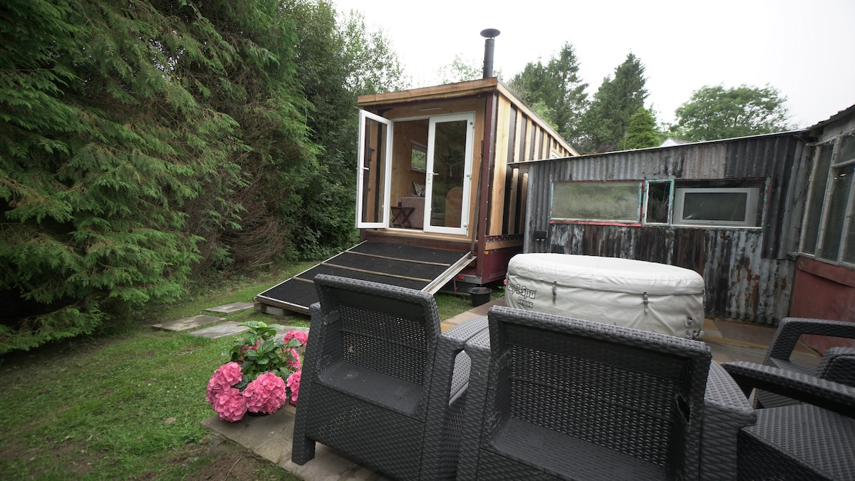 Designed for the perfect getaway, tucked away in a private corner of our garden, where nature is truly at its best. Enjoy a soak in your own private hot tub, chill out on the decking area with marshmallows on the fire, overlooking beautiful views of the Garw Valley or head indoors and cosy up next to the fire with a warm cup of hot chocolate or a glass of bubbly. This beautifully finished Nest in the woods is ideal if you fancy getting away from busy lives to do as little as you like.