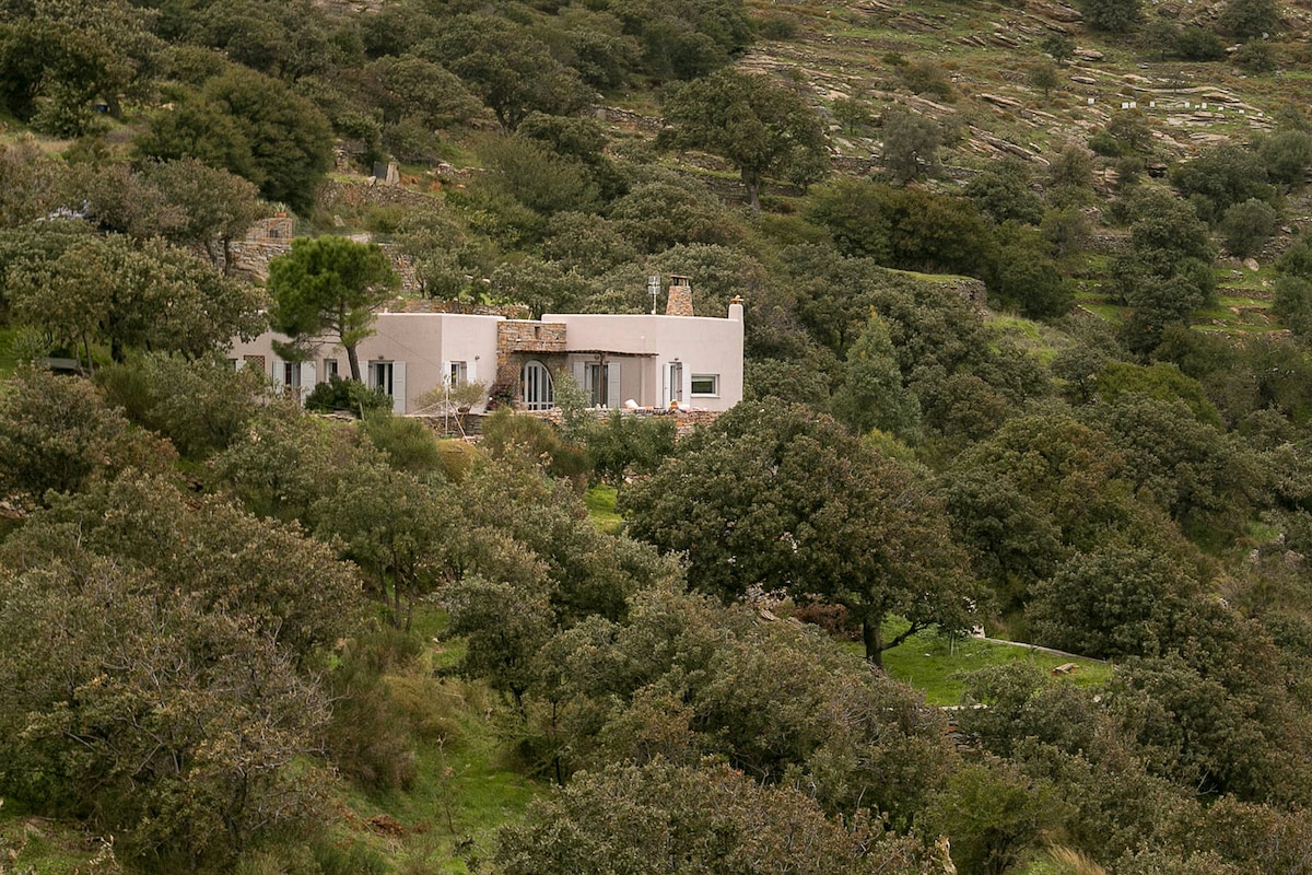 Makikita sa gitna ng mga puno ng oak, mga ubasan, mga tanawin ng dagat, at isang lumang kapilya, ang ipinanumbalik na wine press na ito ay umaapela sa mga mahilig sa kalikasan at mga aso. Ang may - ari ng property na siya mismo ay isang vine grower na nakatira sa mas malaking bahay sa bakuran at may kakayahan at handang magbigay ng 'impormasyon ng insider' sa isla. ang nayon ng Ioulis ay 20 minuto habang naglalakad. Inirekomenda ang isang kotse. TANDAAN: May dalawang palakaibigang aso sa property