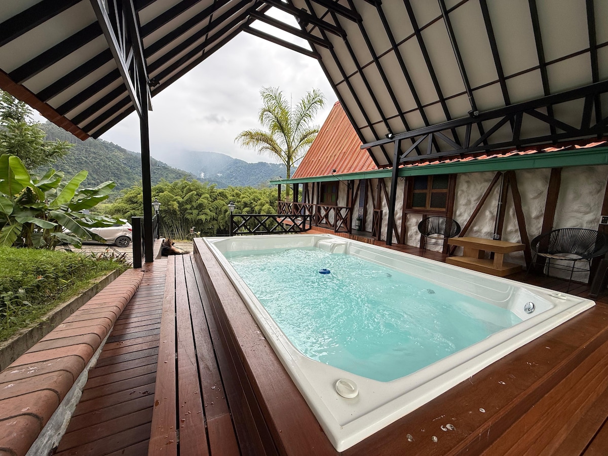 Relájate en un espacio excepcional para descansar, disfruta del sonido del río 🍃, la visita de aves 🛁💆🏻♀️💆🏻♂️🦜🐦⬛ y el aire fresco, nuestros hermoso ambiente cuenta con un jacuzzi privado el cual dará lugar a una experiencia unica, estamos ubicados a 1 km antes de termales Santa Rosa ingresando 1,2 km a la izquierda, frente a la chiva del café ☕️ , en la vía encontrarás restaurantes de comida típica, miradores y demás.