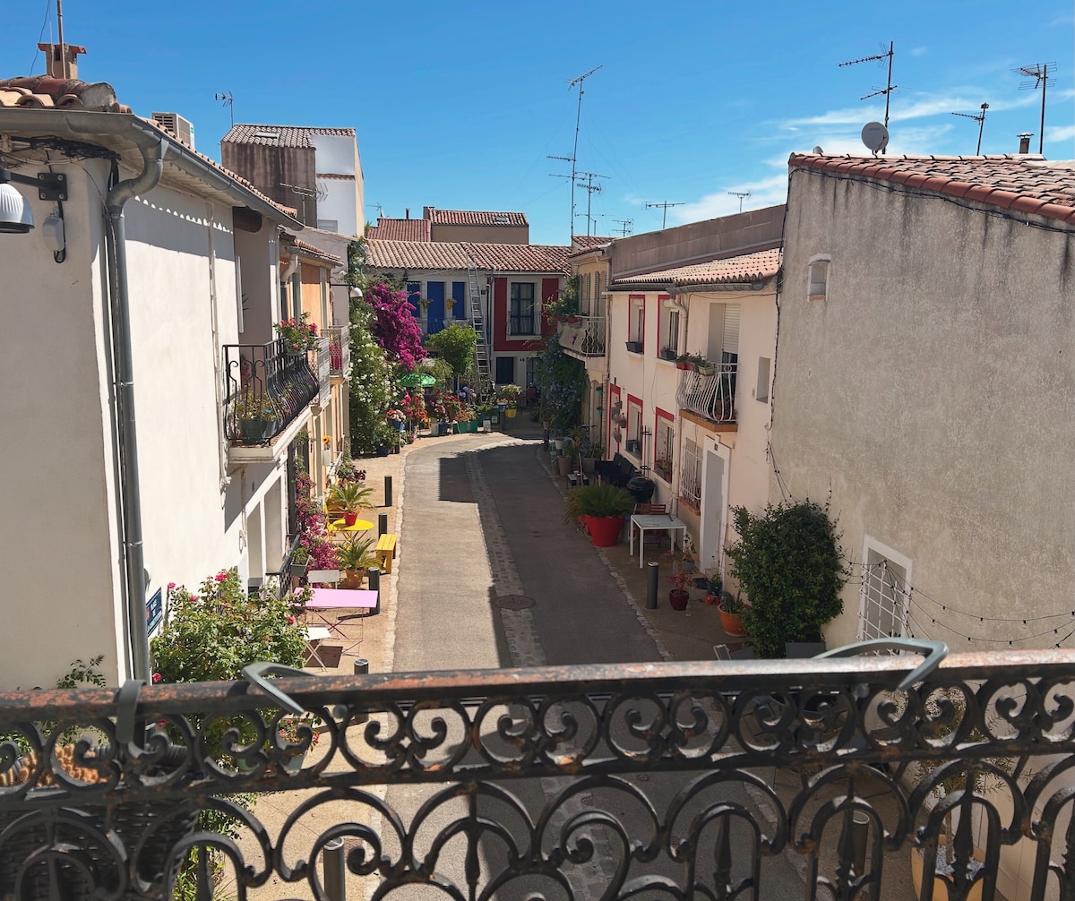 Ganap na inayos na studio na may balkonahe, sa gitna ng nayon ng Pérols sa mga pintuan ng Camargue. Matatagpuan ka sa pagitan ng downtown Montpellier, at ng aplaya. Ang apartment na ito ay nilagyan ng lahat ng kailangan mo para sa isang kaaya - ayang paglagi (tingnan ang seksyon ng kagamitan), isang pribadong parking space na naka - book nang libre at isang bike room, 2 foldable bikes ay din sa iyong pagtatapon upang ma - circulate sa gitna ng village at din tamasahin ang isang magandang lakad.
