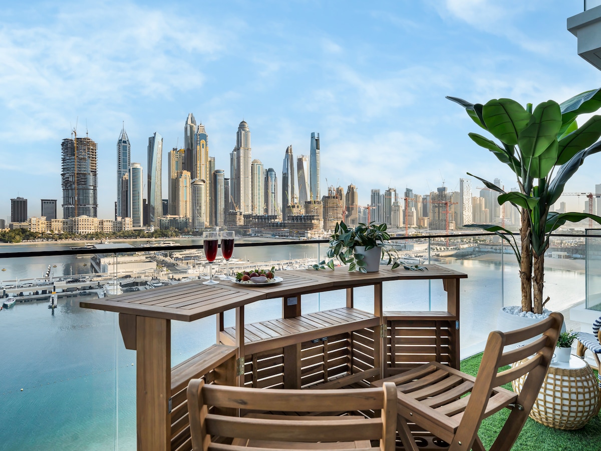 Mamalagi sa 34th floor ng 5‑star na Paramount Midtown Hotel and Residence sa Dubai na malapit sa Downtown at Metro. May magandang tanawin ng Dubai Skyline at karagatan ang sopistikadong apartment na ito na may 1 kuwarto at 1.5 banyo at 90 sqm ang laki. Masiyahan sa mga high - class na amenidad, kumpletong kusina, at komportableng sala. Matatagpuan sa Business Bay, ilang minuto ang layo nito mula sa Dubai Mall at mga nangungunang atraksyon. Matutulog ng 5 (4 na may sapat na gulang + 1 maliit na bata). Kasama ang high - speed na Wi - Fi, TV, pribadong paradahan, at mga pangunahing kailangan para sa sanggol kapag hiniling.