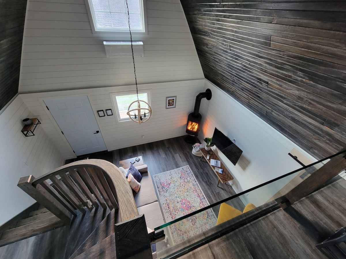 This barn style cabin is located 10 -15 minutes from Stratford, Ontario the home of Stratford Festival. This newly renovated 1.5 floor retreat offers an open concept living area, along with two bedrooms with queen size beds. Large windows and a 16 foot ceiling height in the living room add to the brightness of the space. This home away from home offers both comfortable seating inside and a screened in patio nestled into the trees. A way to get away from the city and enjoy the fresh air.