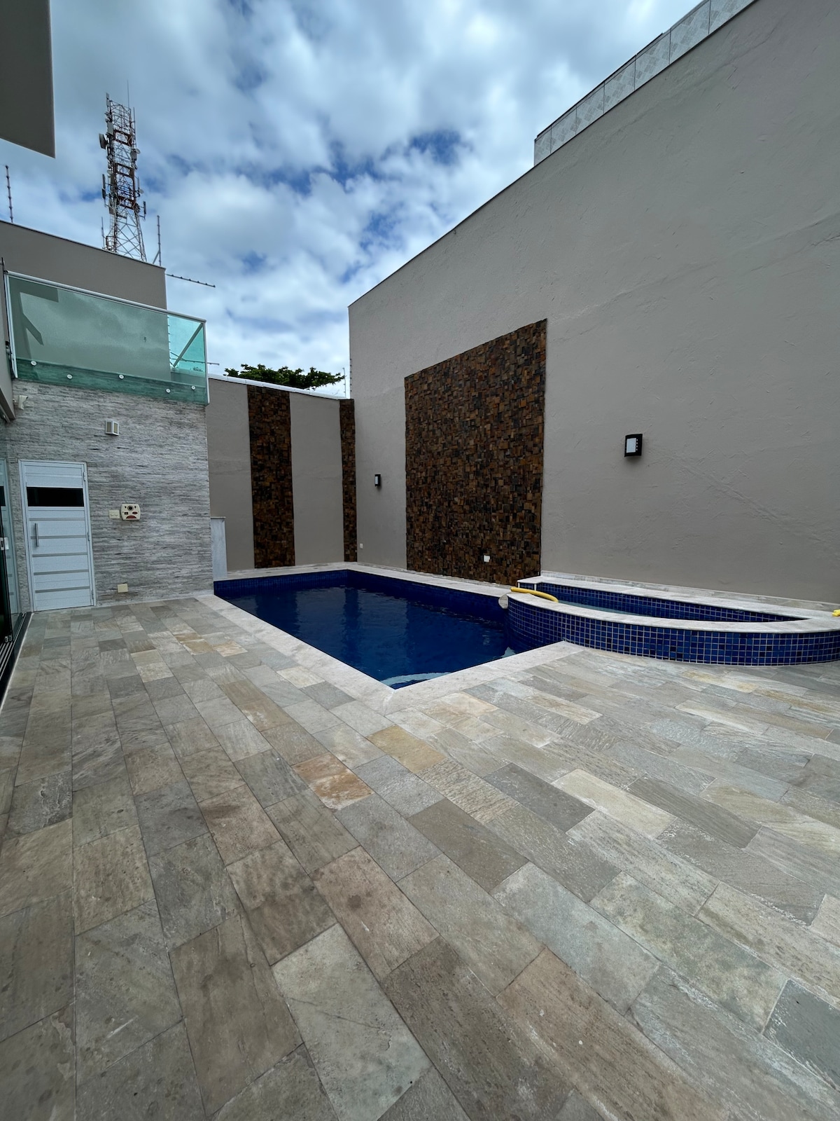 Malawak na espasyo at may kasamang: *Swimming pool na may talon at whirlpool *Wi - Fi *TV * Gourmet area na kumpleto sa barbecue, refrigerator, freezer, microwave, kalan, kagamitan. *maraming hanay ng mga mesa na may mga upuan * pergolatomag - enjoy nang may higit pang amenidad * naka - air condition na kuwarto, dalawang treliches at double bed *2 paliguan *Ampla area lawn. * Anim na kotse na paradahan * tahimik at ligtas na lugar na may de - kuryenteng bakod at pagsubaybay .