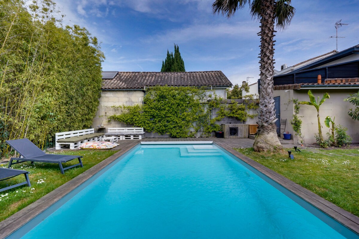 Maligayang pagdating sa aming tahanan ng pamilya sa bato, isang daungan ng kapayapaan sa gitna ng Bordeaux Bastide. Masisiyahan ka sa berdeng hardin na may pinainit na pool, maliwanag na kuwarto kung saan naghihintay ng piano, at magiliw at nakapapawi na kapaligiran . Ito ang aming tahanan ng pamilya, isang isla ng halaman sa lungsod, kung saan kami nakatira ng aking mga anak na babae. Libreng paradahan sa malapit. Isang natatanging karanasan na pinagsasama ang kaginhawaan, kalikasan at lungsod.